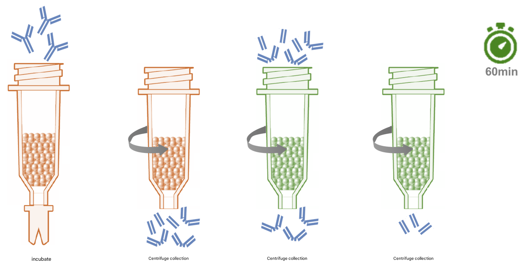 The Protein A purification column uses recombinantly expressed Protein A, which has enhanced the specificity of binding to Fc and improved protein stability compared to natural Protein A. The Protein A purification column can specifically bind to the Fc segment of a variety of immunoglobulins.