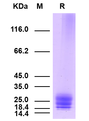 The theoretical molecular weight is 16.9 kDa. Due to glycosylation, the molecular weight of SDS-PAGE reduction electrophoresis is 25-30 kDa.