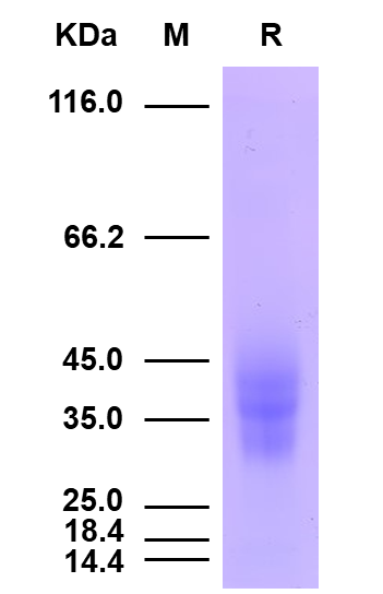 The theoretical molecular weight is 29.8 kDa. Due to glycosylation, the molecular weight of SDS-PAGE reduction electrophoresis is 40-50 kDa.